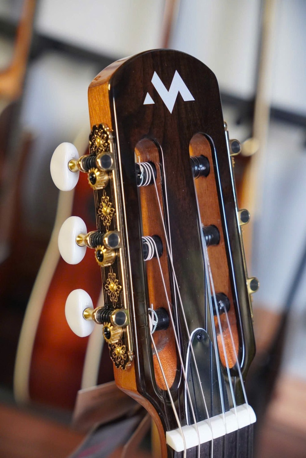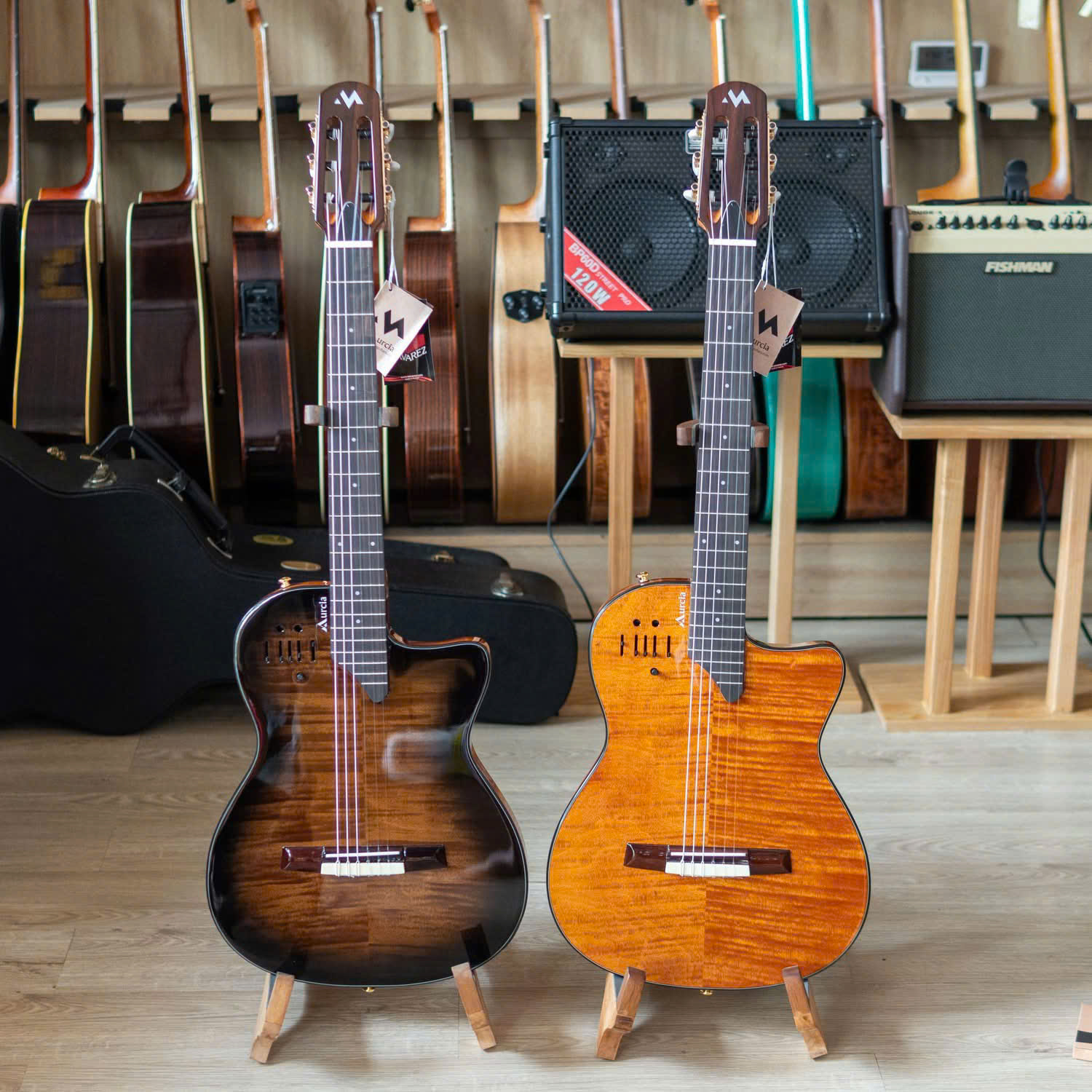 Lưng và hông: Gỗ mahogany nguyên tấm tăng cường độ ấm và chiều sâu âm thanh